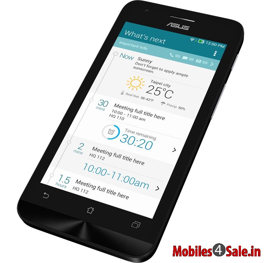 The Asus Zenfone C is a budget smartphone. This dual SIM Android smartphone runs on Android KitKat v4.4.2 OS featuring a dual-core Intel Atom Z2520 processor clocked at 1.2 GHz. Powered by a 2100 mAh Li-ion battery, this phone gets a 4.5-inch IPS capacitive display featuring the Asus ZenUI user interface. the phone gets a memory of 1 GB on RAM, 8 GB on internal storage and upto 64 GB on expandable memory via microSD card. The phone gets a 5 MP Primary camera with LED flash, and a secondary VGA camera for video-calls. It also gets GPS, Wi-Fi, Bluetooth and microUSB v2.0 as connectivity options.