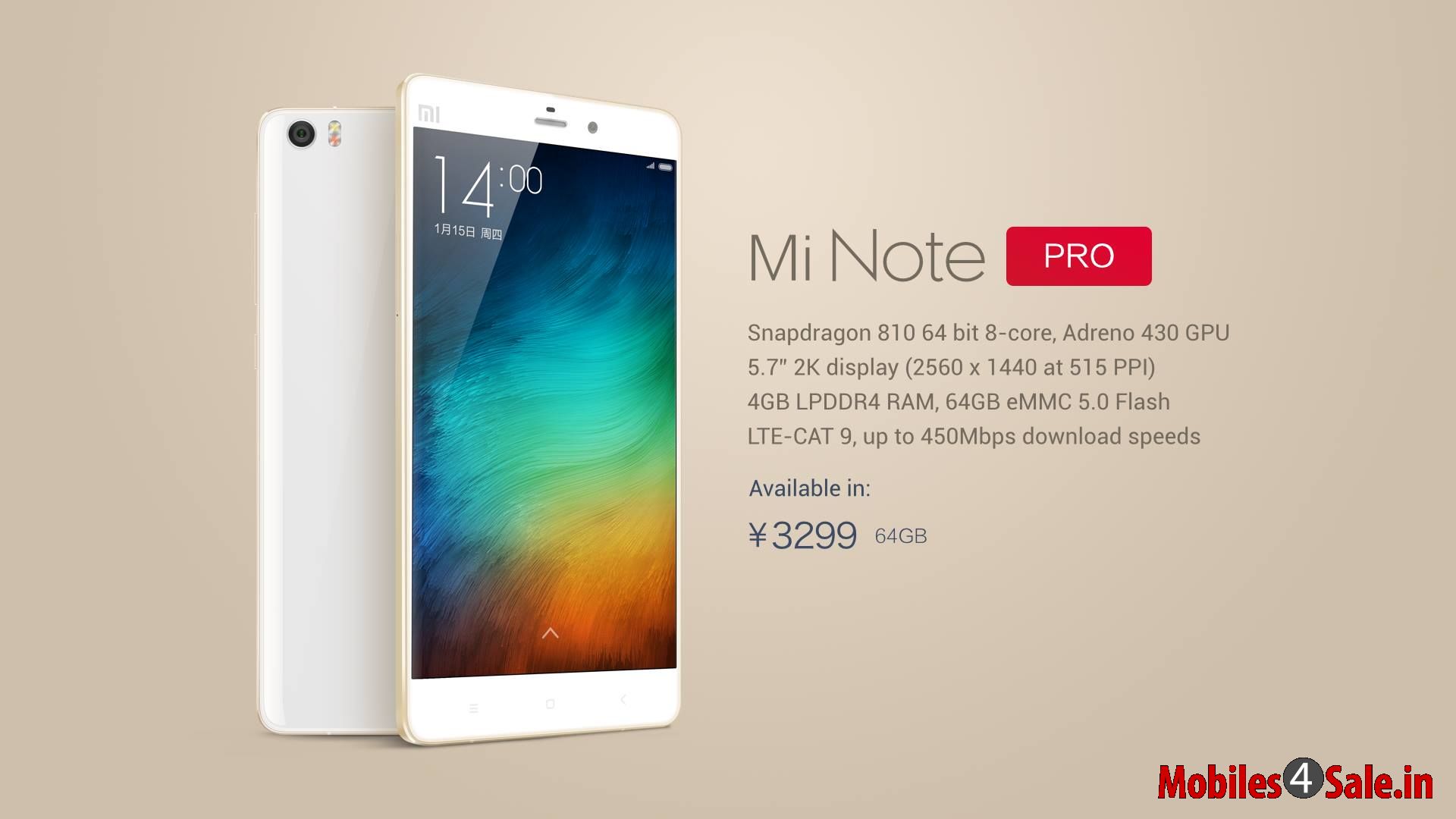 Xiaomi has finally launched the top-end Mi Note Pro phablet which comes with an octa-core 64-bit Qualcomm Snapdragon 810 processor (four Cortex-A57 cores clocked at 2GHz, and four Cortex-A53 cores clocked at 1.5GHz) alongside 4GB of LPDDR4 RAM and Adreno 430 GPU. A 3090mAh battery powers the funtions of this dual SIM smartphone which runs on Android 5.0 Lollipop OS. The device sports a 5.7 inches QHD IPS Display.