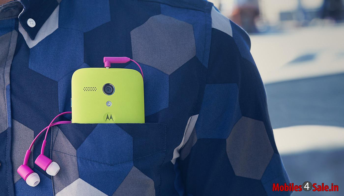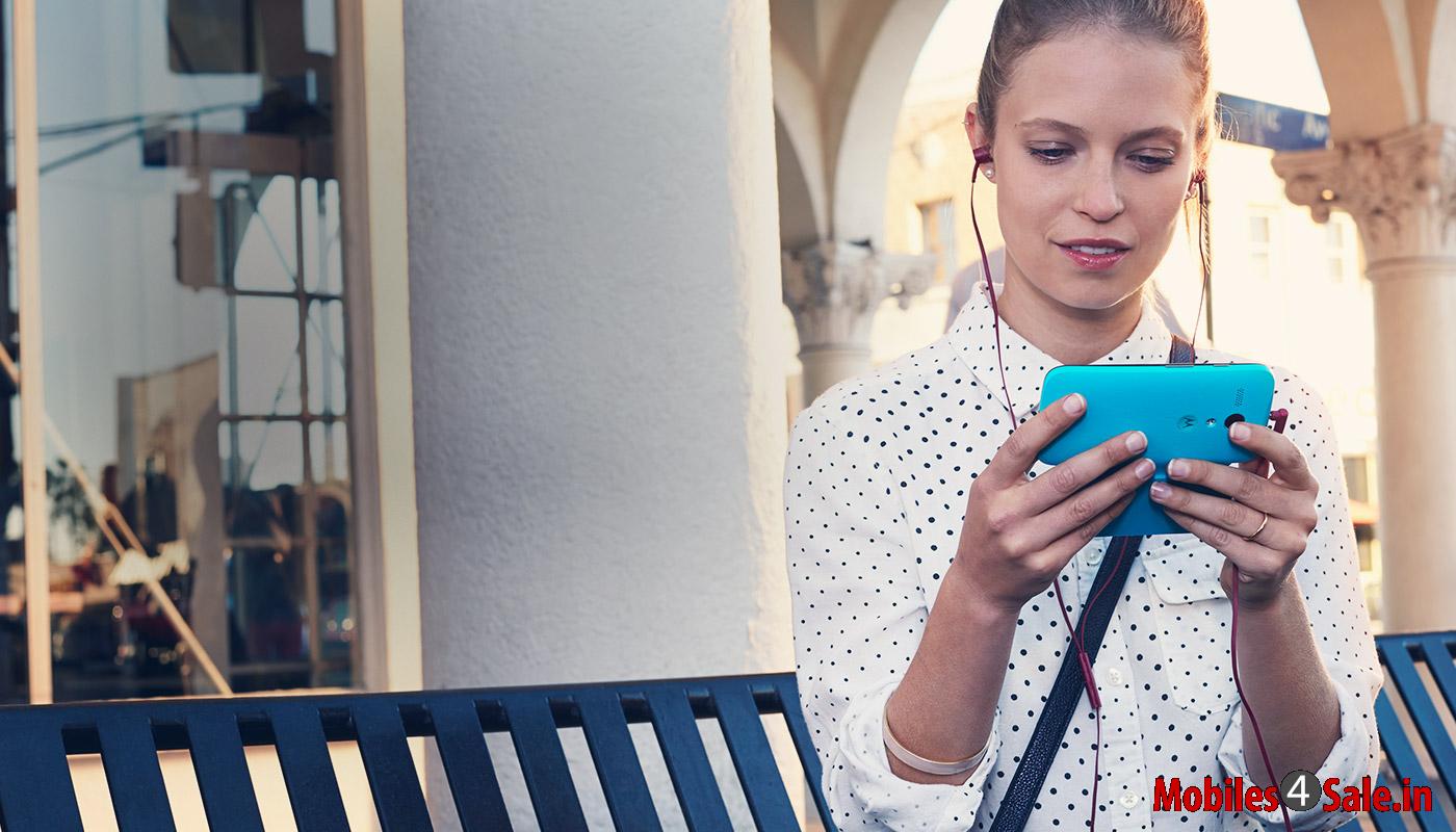 The Moto G comes with a decent 4.5 inches touchscreen, which has a resolution of 1280 x 720 HD pixels and 329 ppi (pixel per density). This makes the device a premium stuff in the mid-sized smartphone class.